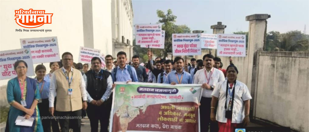 पिंपरी चिंचवड: (ऑनलाइन न्यूज परिवर्तनाचा सामना) रॅलीला विविध घोषवाक्यांनी रंगत आणली. विद्यार्थ्यांनी “स्वच्छ आळंदी सुंदर आळंदी”, “युवाशक्ती मतदान शक्ती”, “मतदान हा हक्क नाही, तर कर्तव्य आहे” अशा शक्तिशाली घोषवाक्यांनी परिसर दणदणाट केला.ही रॅली कॉलेज कॅम्पसहून सुरू होऊन आळंदी प्रदक्षिणा रस्त्यापर्यंत वळला आणि त्यानंतर परत कॉलेज कॅम्पसवर समाप्त झाला. विद्यार्थ्यांच्या या सशक्त सहभागामुळे आळंदीतील मतदारांमध्ये जागरूकतेचा प्रसार झाला.या महत्त्वाच्या उपक्रमाचे यशस्वी