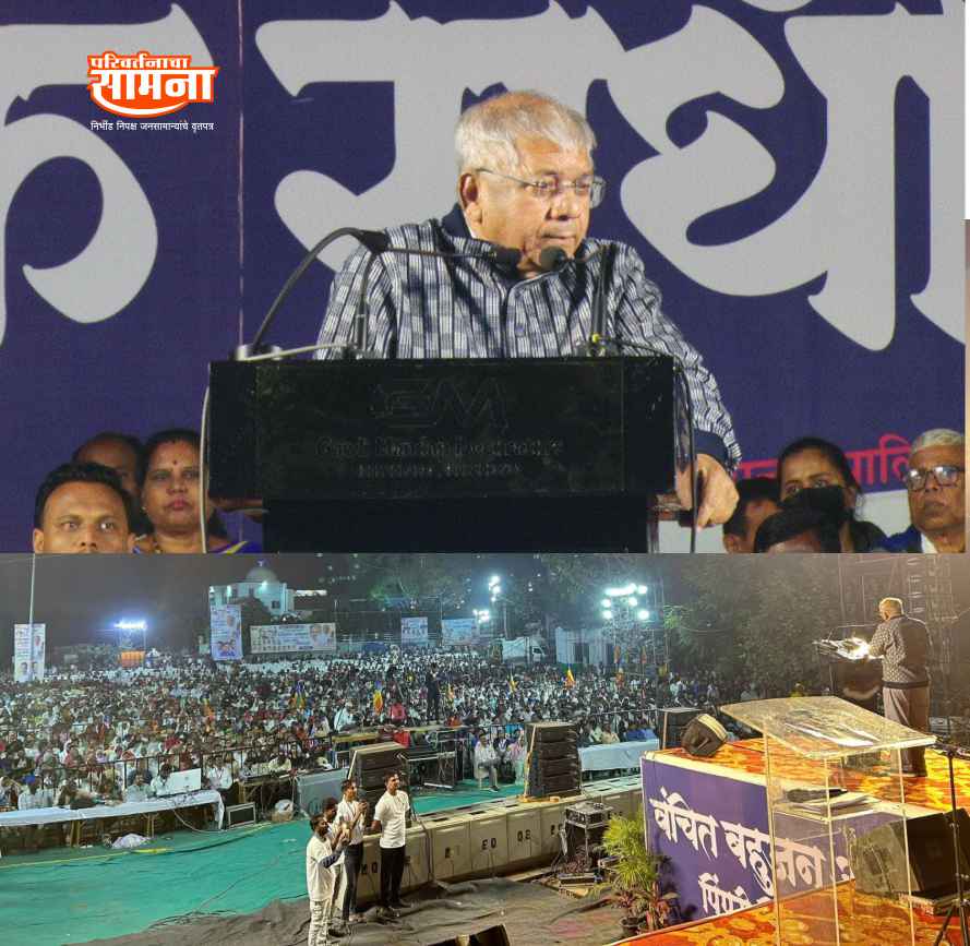 पिंपरी ऑनलाईन परिवर्तनाचा सामना- (प्रतिनिधी) दि.१३ डिसेंबर २०२५:– शहरात आयोजित ‘एक संधी वंचितला’ या भव्य निर्धार सभेत वंचित बहुजन आघाडीचे सर्वेसर्वा ॲड. बाळासाहेब उर्फ प्रकाश आंबेडकर यांनी सत्ताधारी व्यवस्थेवर जोरदार टीका करत नागरिकांना संविधानिक हक्कांसाठी जागृत राहण्याचे आवाहन केले. हजारो नागरिकांच्या उपस्थितीत झालेल्या या सभेत त्यांनी मतदान प्रक्रिया, झोपडपट्टी पुनर्वसन, SRA योजना, देशाची राजकीय दिशा आणि संविधानाच्या रक्षणावर परखड भूमिका मांडली.बाळासाहेब आंबेडकर म्हणाले की, ज्याला मतदानाचा अधिकारच वापरता आला नाही, त्याचे मतदान चोरी झाले असे म्हणता येईल. पण मतदानाचा हक्क बजावूनही मत चोरी झाल्याची ओरड केली जाते, ही दिशाभूल आहे. प्रत्यक्षात बूथवर बसलेले अधिकारीच १०० ते १५० मते सत्ताधारी पक्षाला टाकतात. ही मतांची चोरी नाही, तर अधिकची मते सत्ताधाऱ्यांना देण्याची पद्धतशीर प्रक्रिया राबवली जात आहे. ते डॉ बाबासाहेब आंबेडकर स्मारक (भीमसृष्टी) मागील मैदानावर झालेल्या एक संधी वंचितला सभेत बोलत होते. यावेळी सूर्यपुत्र भैयासाहेब आंबेडकर यांना ११३ व्या जयंतीनिमित्त अभिवादन करण्यात आले.सुरुवातीला गायक मेघानंद जाधव यांच्या भीमगीताचा कार्यक्रम झाला.तसेच समता सैनिक दलाकडून ॲड बाळासाहेब आंबेडकर यांना सलामी देण्यात आली.